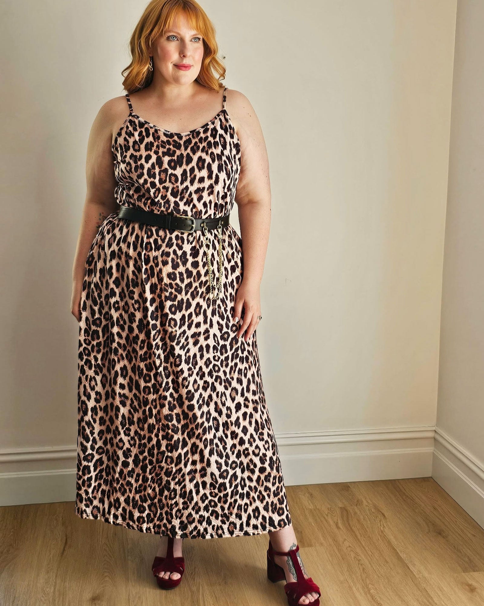 A modern essential in fluid silhouette. Crafted from a silky Cotton / Poly / Spandex blend with subtle stretch and memory, the Maxi Slip Dress moves effortlessly while maintaining its shape. The flared full-length skirt skims elegantly, complemented by wide singlet-style straps and a round neckline for clean, minimal lines. Practical side seam pockets enhance the thoughtful construction without compromising the refined silhouette. The soft, sophisticated leopard print balances statement with ease — a piece designed for effortless day-to-night dressing.
