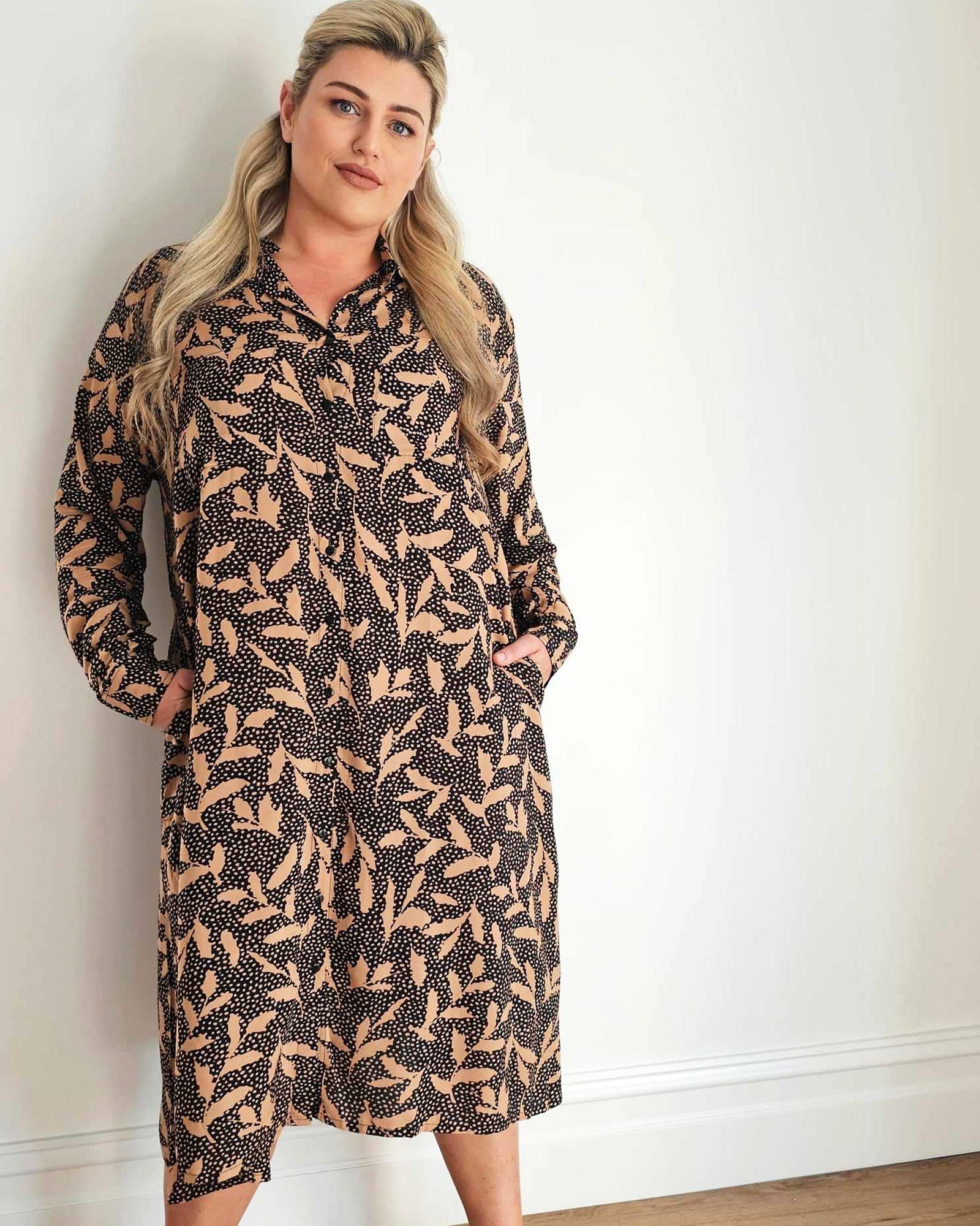 French Girl Midi Shirt Dress // Leaf Multi
